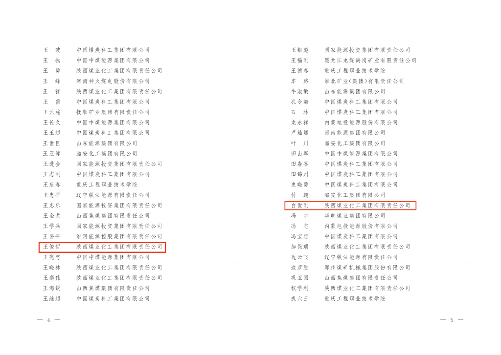 近日,中國煤炭工業(yè)協(xié)會(huì)2023年度煤炭行業(yè)技能大師評選結(jié)果揭曉,新型能源公司副總經(jīng)理劉新成、神木分公司白世剛、灃京公司陳通、中泰公司王俊哲4人榮獲“煤炭行業(yè)技能大師”稱號。該公司人力資源部張勇等3人被評為“煤炭行業(yè)技能人才優(yōu)秀工作者”稱號。